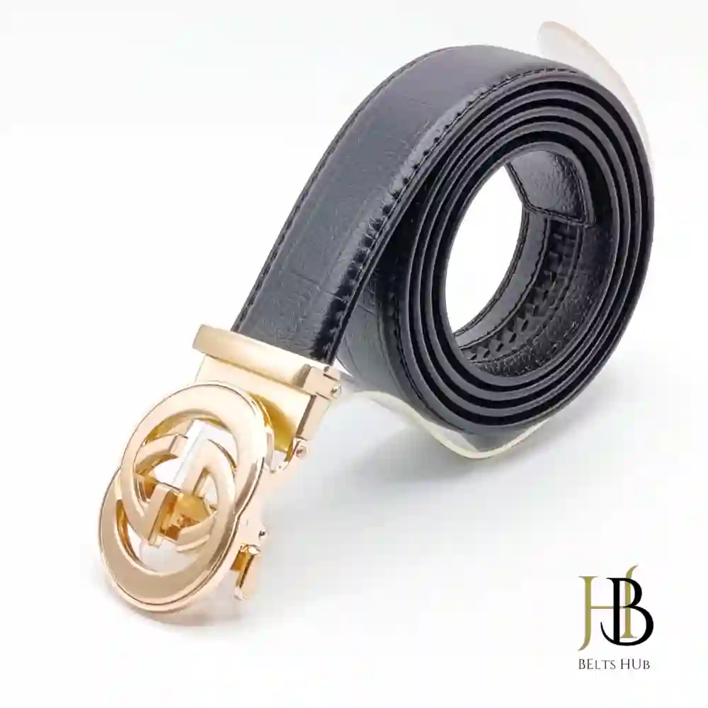 Black Leather Belt G Buckle in Gold is must-have wardrobe staple. The belt has indents that work to make the buckle stop exactly to your size. The faux leather belt is made with premium quality materials. The finishing is mastery of stellar craftsmanship and maintains the brand’s quality.