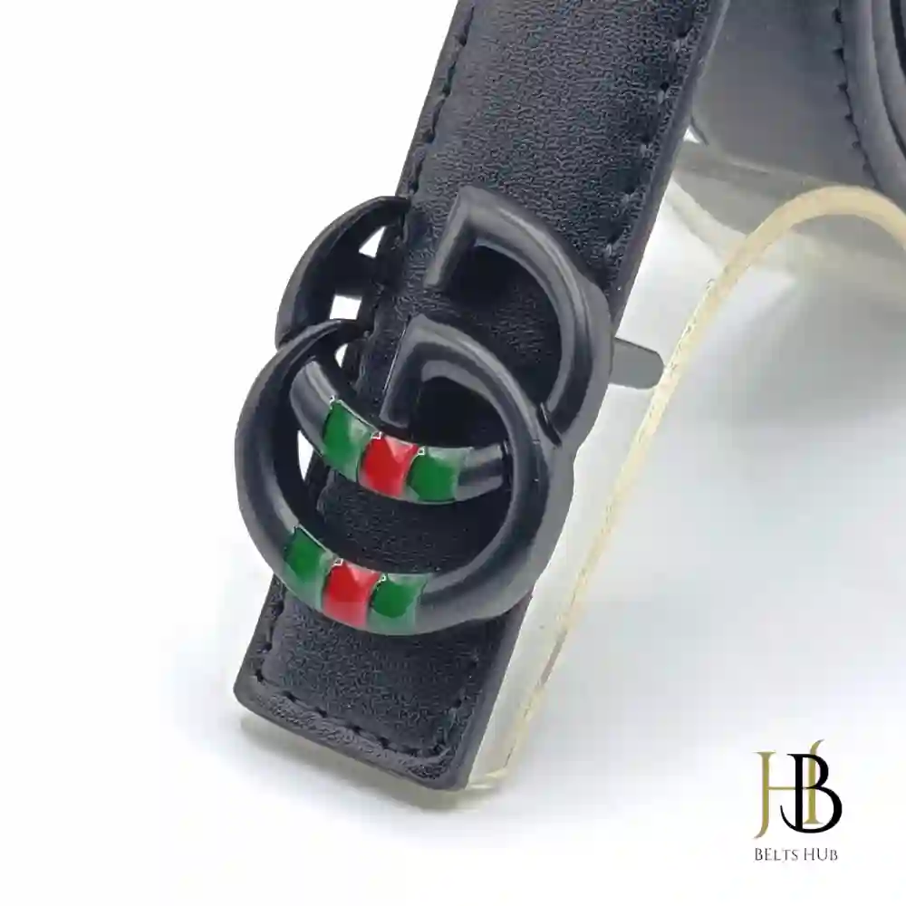 Buckle: High-quality metal, black finish, with an engraved logo