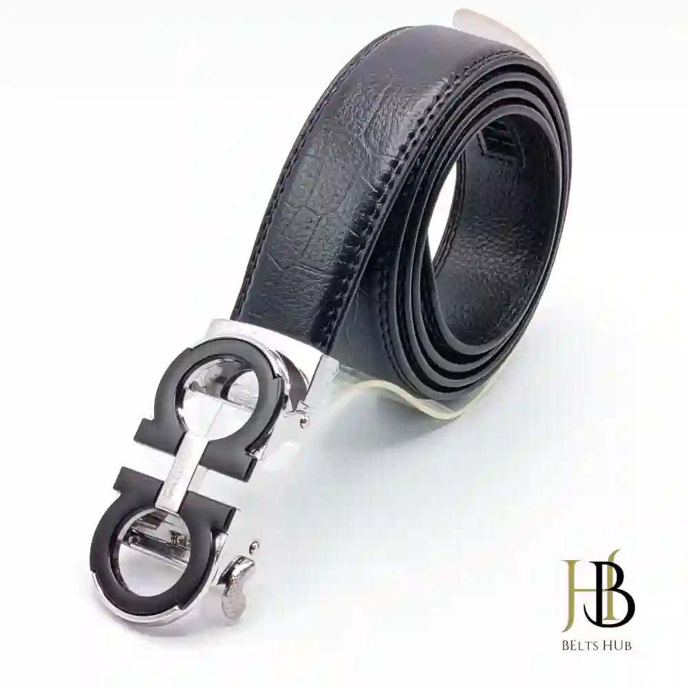 The faux leather belt is made with premium quality materials. The finishing is mastery of stellar craftsmanship and maintains the brand’s quality. The sophisticated black belt comes with an elegant buckle with a brand insignia. The buckle will remain the same if not exposed to abrasion.