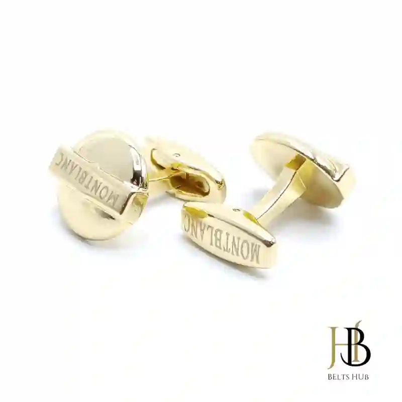 Spiral Gold Cufflinks is a stunning example of high-end fashion, designed for the discerning gentleman who appreciates fine craftsmanship. Featuring a sleek round design with a gold-toned finish, the cufflinks proudly display the iconic logo engraved into the center of a black enamel base. The polished metal adds an elegant shine, while the timeless logo ensures these cufflinks are stylish and instantly recognizable.