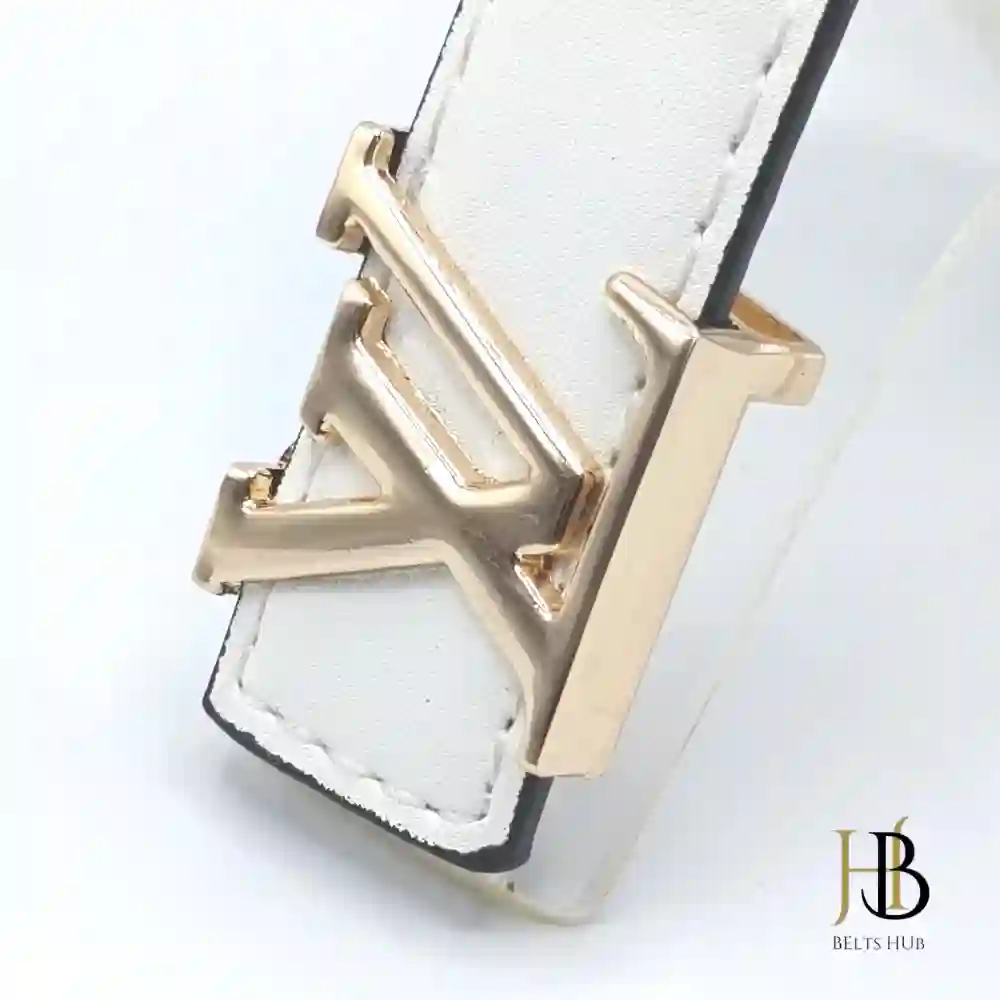 White Brand Belt Golden Buckle is must-have wardrobe staple. White Brand Belt Golden Buckle has indents that work to make the buckle stop exactly to your size. The faux leather belt is made with premium quality materials. The finishing is mastery of stellar craftsmanship and maintains the brand’s quality.
